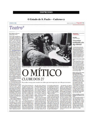 Há, na história da música mundial, uma coincidência reincidente – trágica e sem explicação lógica – sobre a morte de ídolos, de diferentes épocas, aos 27 anos. Alguma espécie de falta de controle sobre a pulsão de morte parece atingir seu ápice nessa idade. Escrito por Daniela Pereira de Carvalho, com direção de Vera Holtz, Gustavo Leme e Guilherme Leme Garcia, “27’s” é uma investigação sobre essa lendária coincidência, conhecida mundialmente como Clube dos 27. Em cena, o ator Gustavo Rodrigues interpreta um famoso roqueiro fictício, cuja vida por pouco não se encerra nessa mesma idade. Ao longo do espetáculo, um híbrido entre teatro e audiovisual, a trajetória emocional do personagem é atravessada pelas histórias de cinco de seus ídolos mortos aos 27 anos: Jimi Hendrix, Kurt Cobain, Janis Joplin, Amy Winehouse e Jim Morrison. A dramaturgia passeia pela biografia desses jovens músicos que influenciaram comportamentos e lançaram tendências, numa crítica social que apresenta uma forte conexão com os dias de hoje ao passar por temas como liberdade, feminismo, cultura de consumo, racismo, sexualidade, política e misticismo.